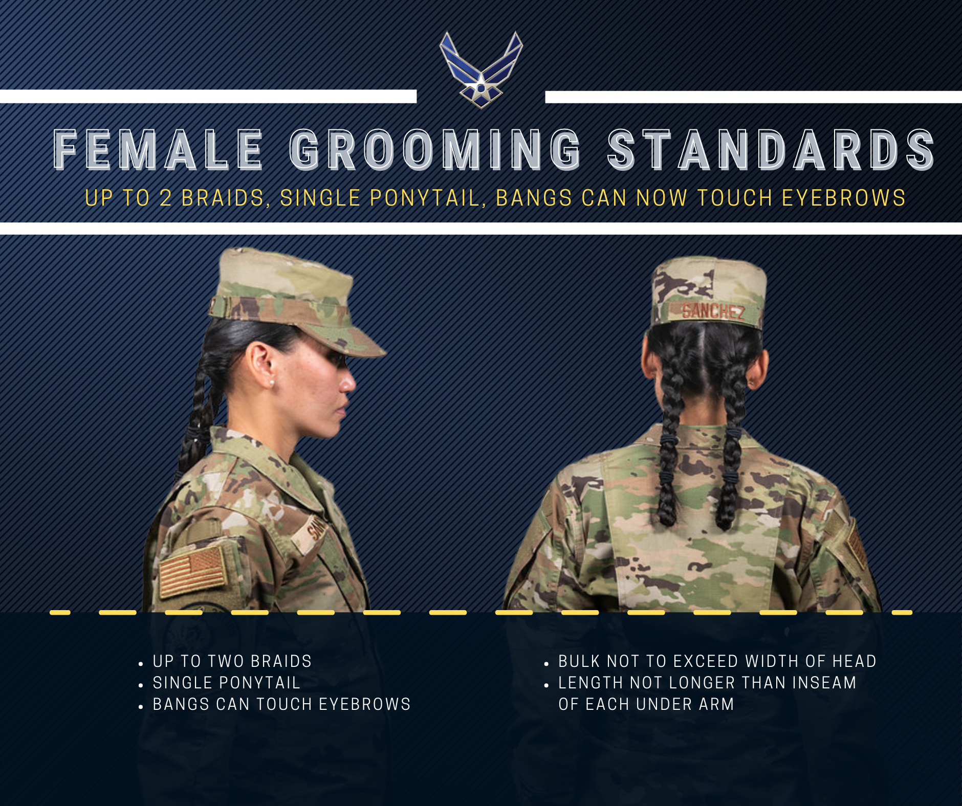 Air Force Female Grooming Standards. Air Force changes hair regulations.